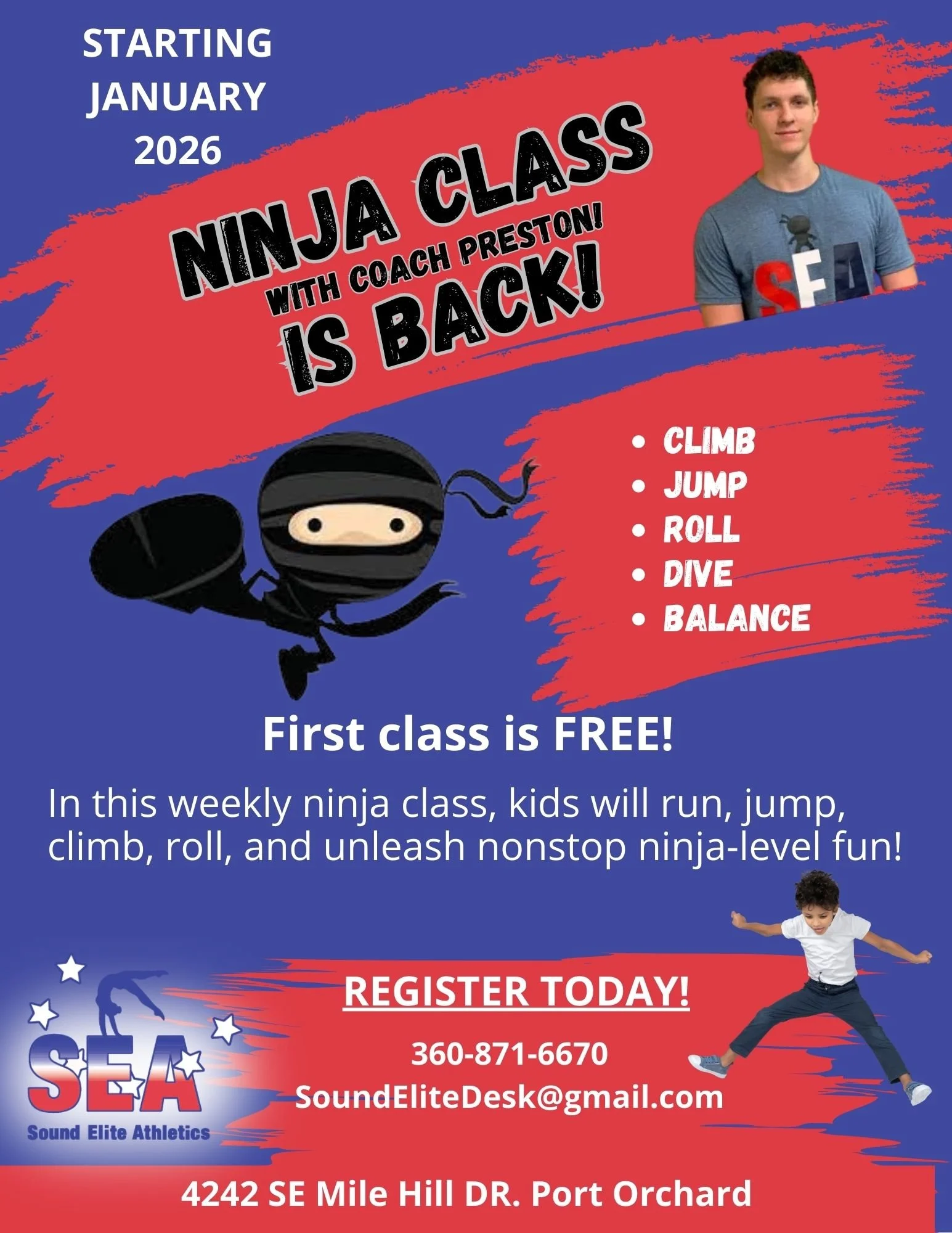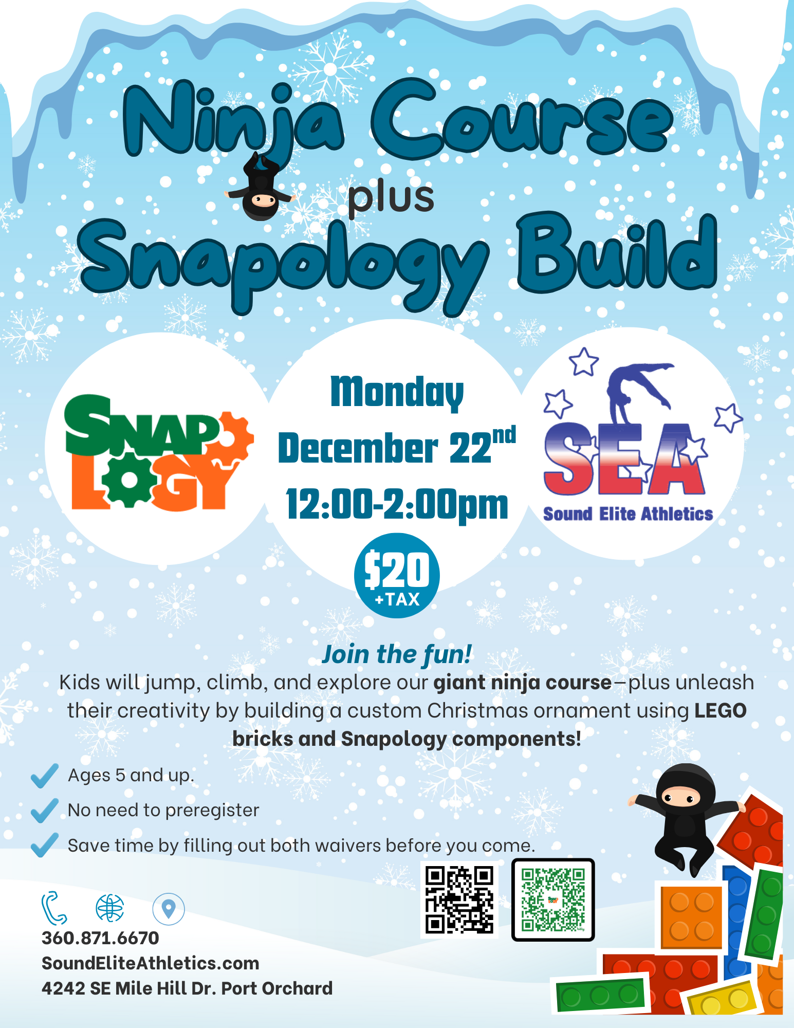 Look what's coming! * Ninja * Boy's Gymnastics * Snapology/Ninja Open Gym! * Winter Break Dance/Tumbling Clinic *