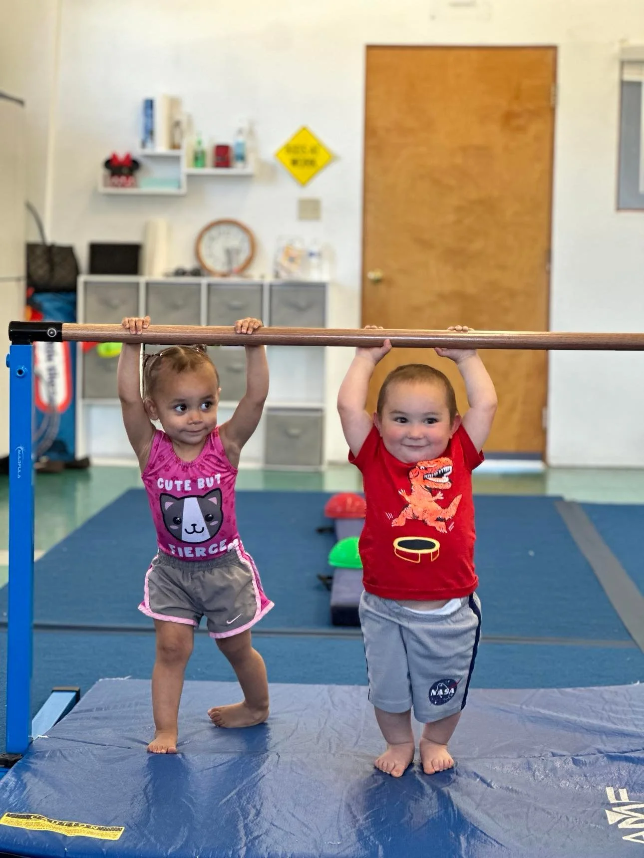 An adult-and-me style class where an adults join their toddlers for warm-ups, climbing, rolling, jumping, and stretching. Together, you’ll help your child develop coordination, confidence, and an early love for movement. It’s a special bonding time filled with laughter, encouragement, and skill-building activities.